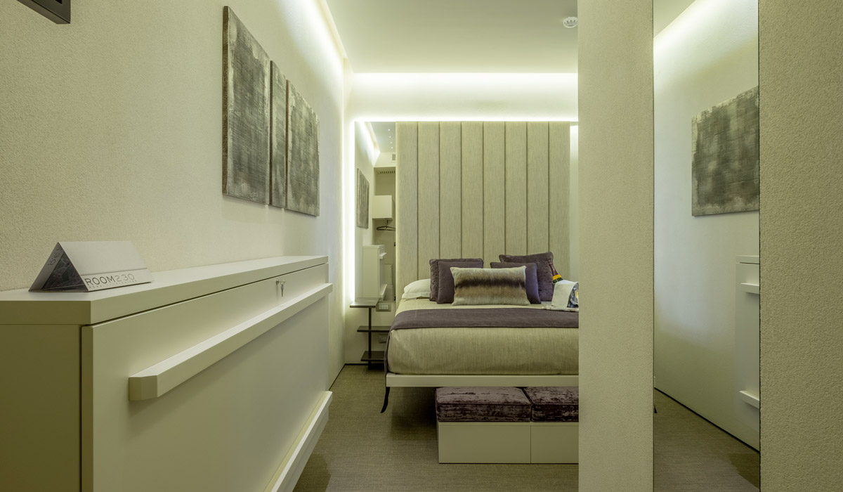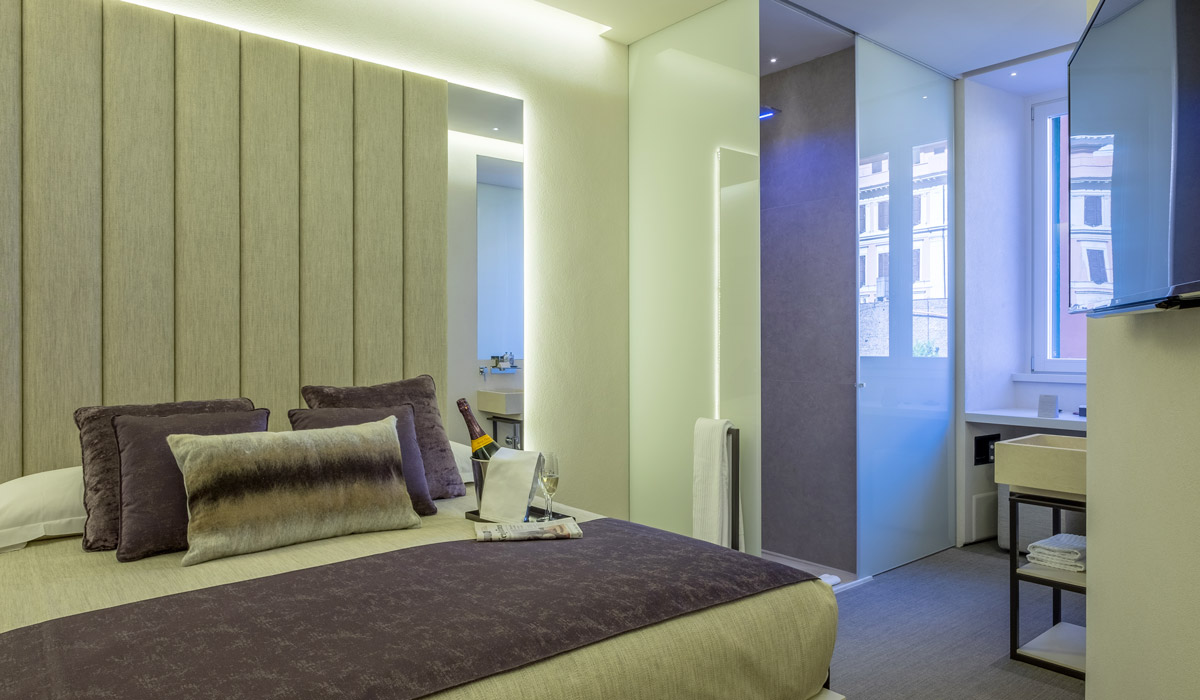 Each suite is equipped with hypo-allergenic bedding, a bathroom with shower complete with LED chromotherapy lighting and a minibar.