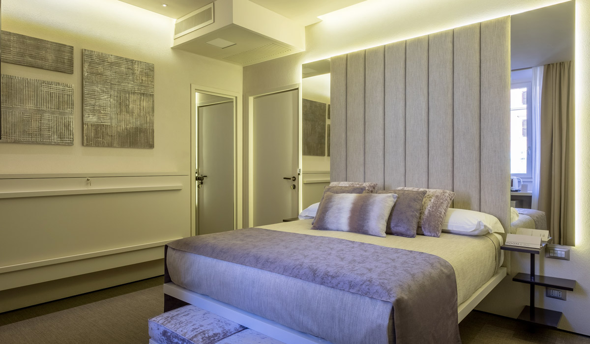This Suite is named after the brilliant, pure, coveted and desired stone, a room designed with modular furniture elements in light and relaxing colours that play on the harmonic light reflections to offer guests a sense of great breadth and freedom. An elegant combination of style and hi-tech technology for maximum comfort and well-being while on holiday - the ideal solution for a luxurious stay in Italy’s capital.