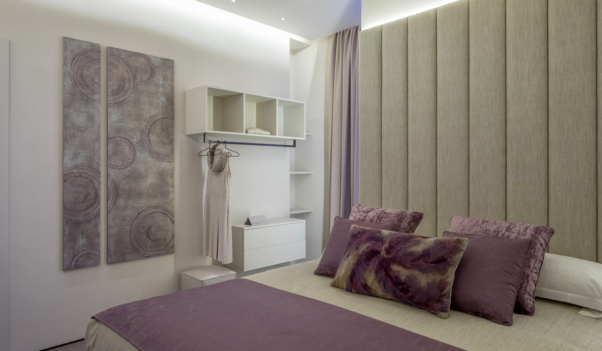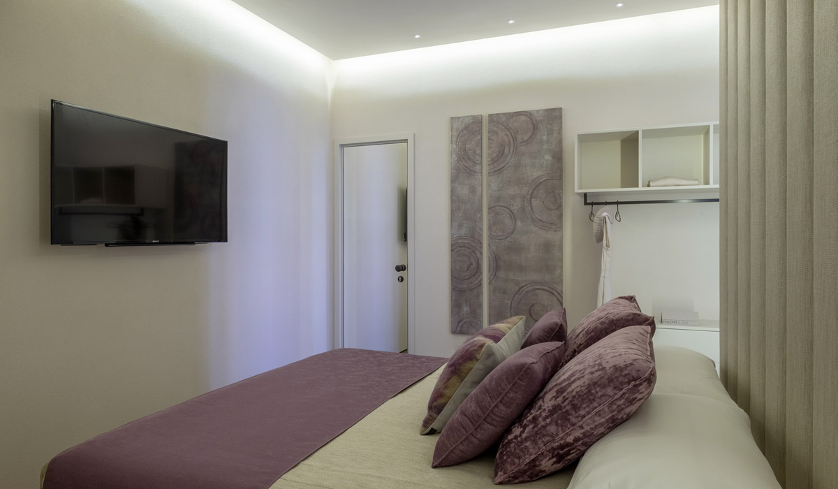 Decorated in soft shades of purple, this suite’s combination of elegance and innovative style welcomes guests in an intimate space with attention to even the smallest detail. Reinterpretations of design elements in comfortable and functional tones to immerse yourself in an atmosphere that combines minimalist simplicity with harmonious shades. Room 230 offers its guests an experience of style for a pleasant stay in the historical centre of Rome.