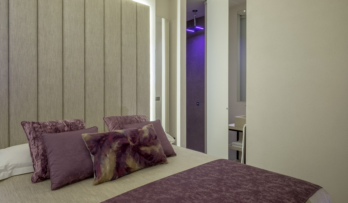 Each suite is equipped with hypo-allergenic bedding, a bathroom with shower complete with LED chromotherapy lighting and a minibar.